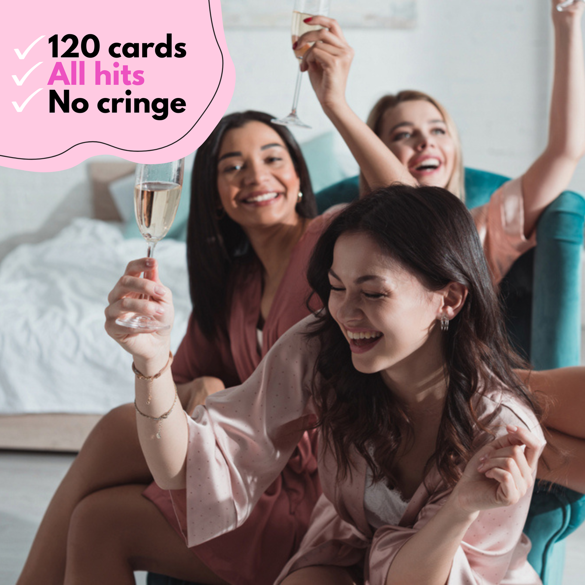 Perfect for bachelorette, birthday, or just simple girls' night at home, this game keeps the vibes flowing.